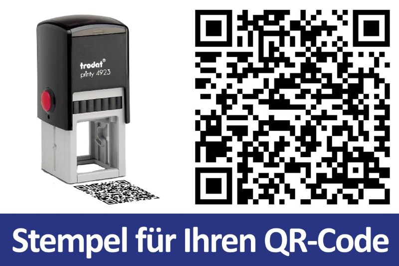 Sind Ihnen schon einmal die wirren Muster in Quadratform auf Werbeplakaten, Briefen oder in Zeitungen und Zeitschriften aufgefallen? Sinnvoll eingesetzt bringen diese QR-Codes einen echten Mehrwert und lassen sich vielfältig für die unterschiedlichsten Marketingzwecke einsetzen. Deshalb haben wir jetzt einen Stempel im Angebot, den Sie mit Ihrem persönlichen QR-Code ausstatten können.