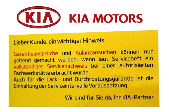 Update: Betriebe aus Österreich und Deutschland wandten sich zu Hinweisen an uns, die in den Serviceheften von Kia Austria enthalten sind. Zuerst fragten wir bei Kia Austria nach: Diese erklärten, dass "eine autorisierte Fachwerkstätte" auch eine freie Werkstatt sein kann. Für uns sehr zweifelhaft: Daher schalteten wir die EU-Kommission ein. KIA Austria muss nun die Formulierungen rechtskonform umsetzen. Alle fälligen Änderungen hier.
