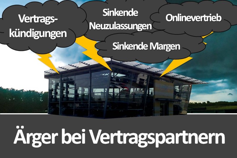 Seit Jahren stagnieren die PKW-Neuzulassungen in Deutschland bei einem Wert um die drei Millionen Fahrzeuge, gleichzeitig steigen die Eigenzulassungen der Hersteller zur künstlichen Stützung der Nachfrage immer weiter an. Der Vertragshandel nahezu aller Marken gerät durch diese Entwicklung mehr und mehr unter Druck. Markenübergreifend macht sich derzeit Unzufriedenheit und Existenzangst breit.