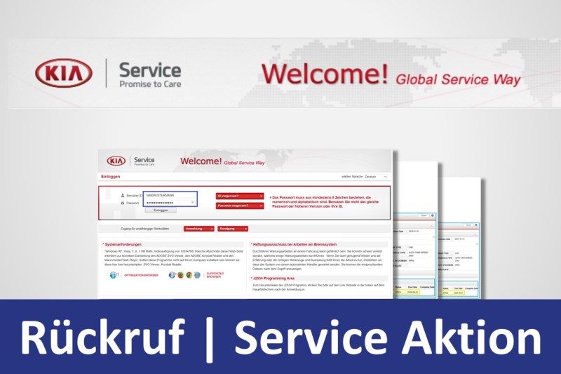 KIA Recall + Service ActionWer an Fahrzeugen innerhalb der Garantiezeit arbeitet, der sollte mit den RMI-Systemen der Fahrzeughersteller arbeiten. Der Grund dafür: zu groß sind die Unterschiede zwischen den Wartungsinformationen, die Ihnen über die Mehrmarkensysteme angeboten werden, und denen der Fahrzeughersteller. Da Sie als Fachbetrieb Ihre Kunden über fällige Rückrufe und Service Aktionen informieren müssen, erklärt unsere Anleitung wie Sie vorgehen.
