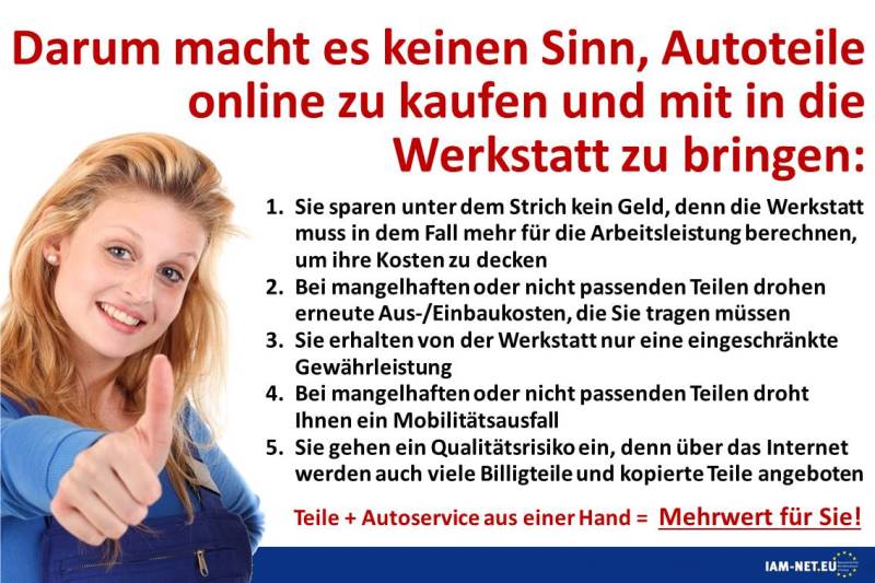 Immer mehr Autoteile-Onlineportale locken mit Teilen zu Billigpreisen. Versucht wird an einem Milliarden-Markt mitzuverdienen und das Geschäft mit dem Autofahrer selbst zu machen. Für die Werkstatt ist der Trend bedrohlich. Doch auch für den Verbraucher gibt es viele gute Gründe, warum er Autoteile nicht online kaufen und dann mit in die Werkstatt bringen sollte.