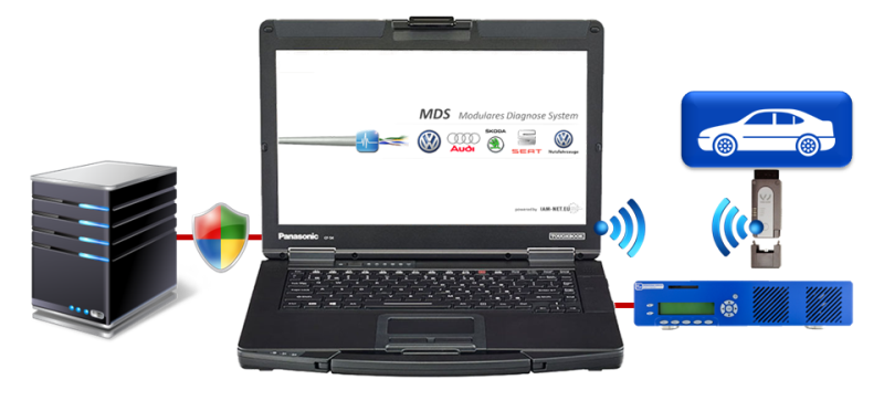 Poiché sconsigliamo la pluriennale esperienza delle officine della nostra rete di soluzioni PassThru, abbiamo sviluppato una nuova soluzione. Con il Modular Diagnostic System (MDS) per i marchi VAG sei direttamente collegato al produttore del veicolo e puoi lavorare come, o addirittura meglio, di una società appaltatrice. Questo copre l'intera larghezza di banda della diagnostica esterna: