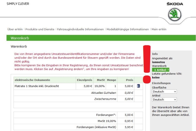 Um tagesaktuelle Wartungspläne oder die Eintragungen im digitalem Serviceplan generieren zu können, müssen Sie sich bei erWin registrieren. Betriebe, die das tun, beklagen sich bei uns über eine Fehlermeldung, die das Buchen der notwendigen Flatrate (1 Stunde / 1 Tag, 7 Tage / 30 Tage / 365 Tage) verhindert: Es erscheint der Hinweis, dass die Umsatzsteuer-ID nicht gültig ist. Was tun?